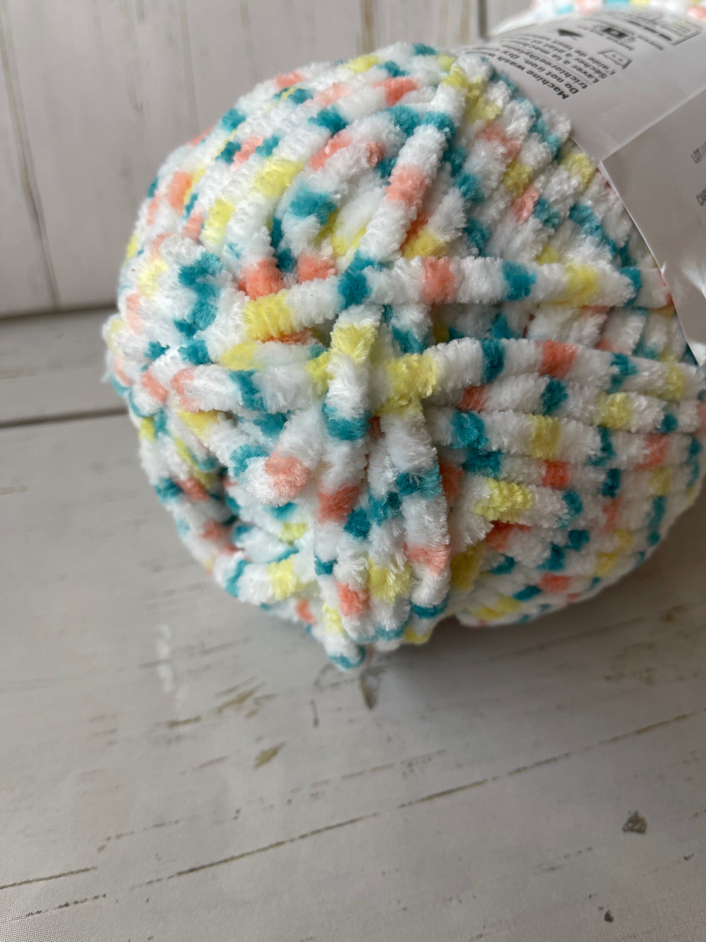 Sweet Snuggles Lite is a super bulky chenille-style yarn perfect for any project. This skein will quickly work into super cuddly baby blankets, hats, scarves, cozy pillows and more.